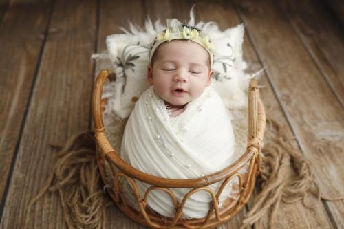 Our studio provides a range of high-quality props, from bespoke blankets to handmade headbands and adorable outfits, all designed to complement the innocence and charm of your newborn.